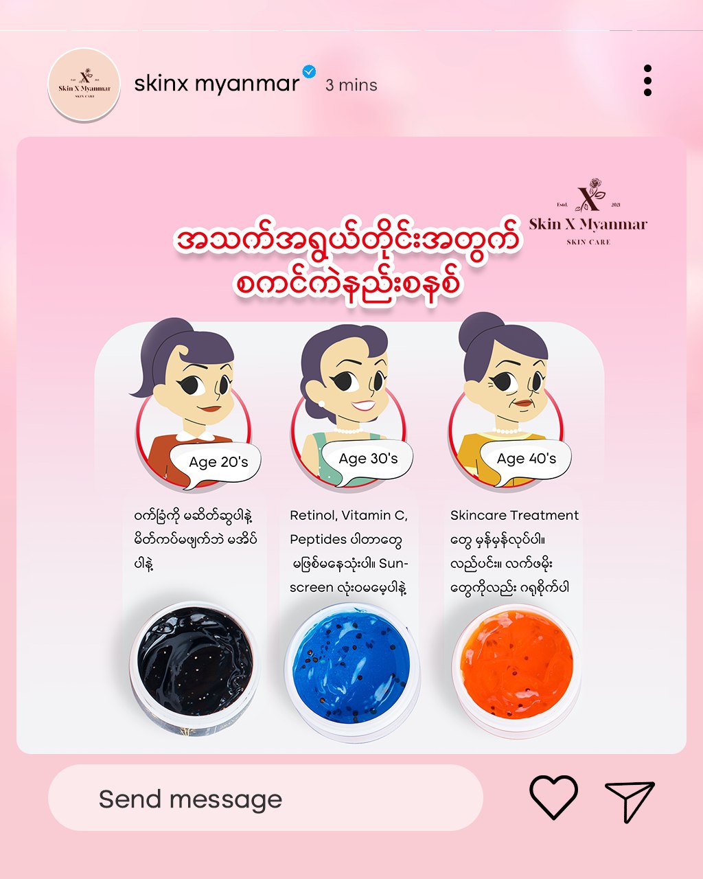 အသက်အရွယ်တိုင်းအတွက် စကင်းကဲနည်းစနစ်များ စကင်းကဲကို ဆယ်ကျော်သက်အရွယ်မှာကတည်းက စလုပ်သင့်နေပါပြီ။ နောက်အသက်အရွယ်ကြီးလာသည်အထိလည်း ဆက်လုပ်ရမှာပါပဲ။🤭 စကင်းကဲဆိုသည်မှာ ရပ်တန့်လိုမရသောအရာလေ။😜 💁🏻♀️ 20 နားတဝိုက်…..ဝက်ခြံထွက်ကောင်းတုန်းအရွယ်မှာ ❗️ဝက်ခြံကို မဆိတ်ဆွပါနဲ့။ အမာရွတ်၊...